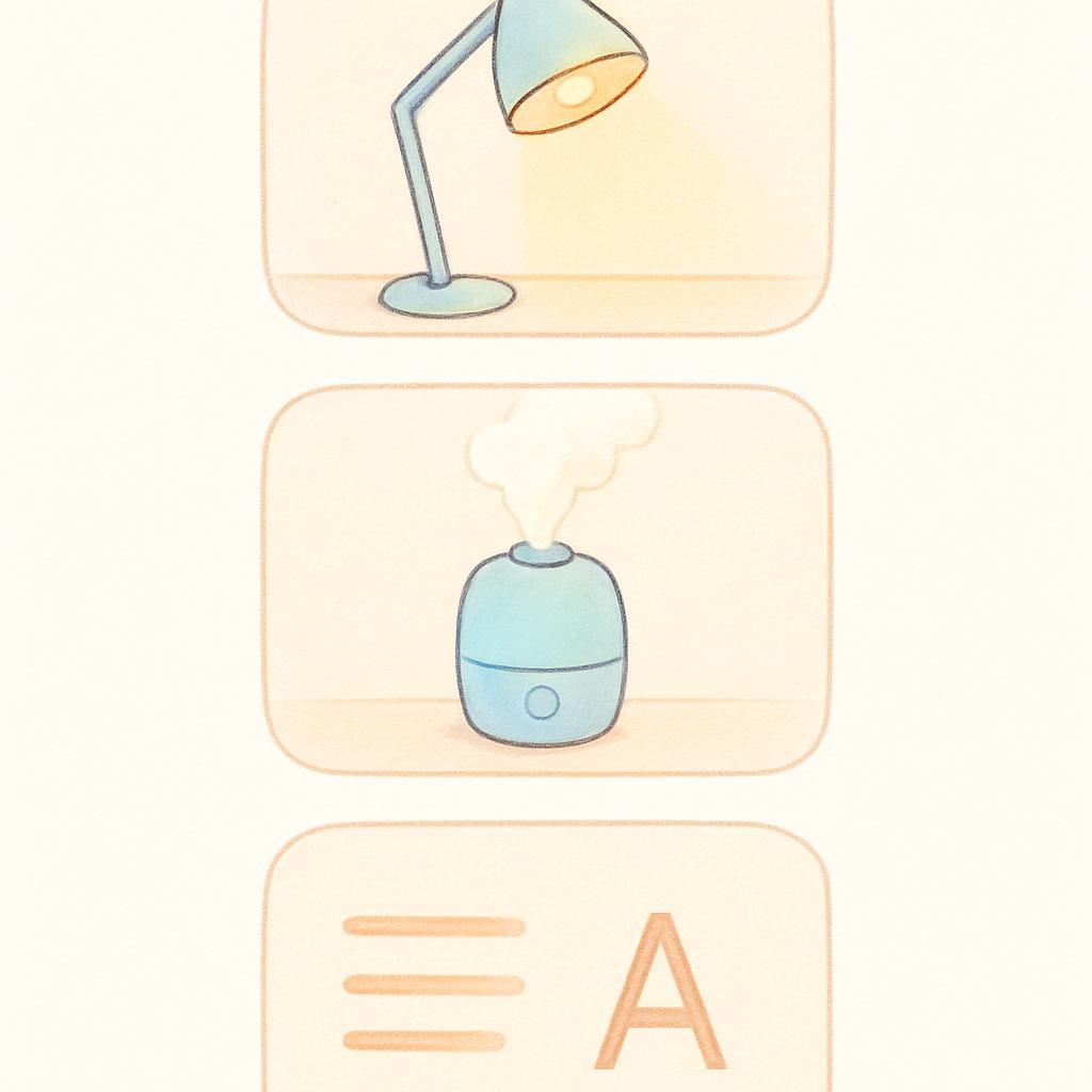 카페인 섭취를 오후 이후로 줄이고, 일정한 취침 시간을 지키며, 침실 온도와 환기를 적절히 관리합니다. 잠들기 전 과도한 빛 노출을 피하고 차분한 분위기를 만드는 것이 도움이 됩니다.