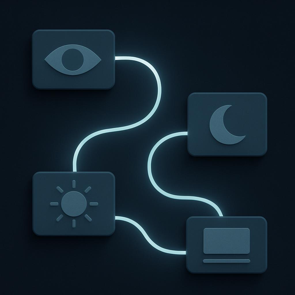 화면과 눈 사이 거리를 대략 팔 길이 이상으로 두고, 주변 조명은 화면 밝기와 대비에 맞춰 조정합니다. 화면 색온도도 낮은 쪽으로 설정하면 눈의 부담이 줄어드는 경향이 있습니다.