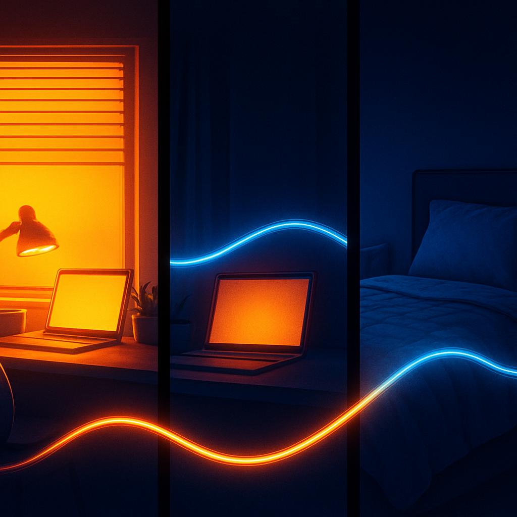 아침에는 자연광 노출을 늘리고, 저녁에는 화면 밝기를 낮추며 온도도 2700~3000K 정도의 조명을 선택하는 것이 일반적인 권장사항입니다.