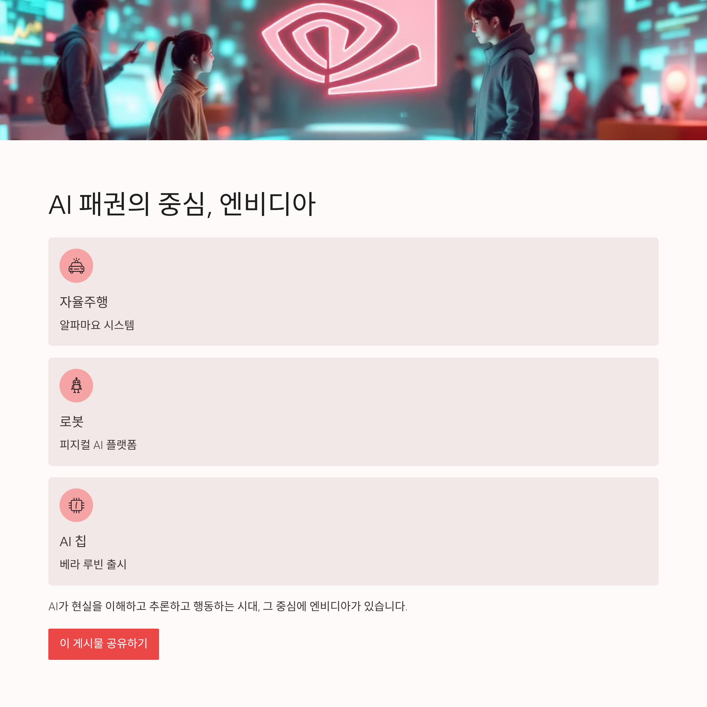 "AI가 현실을 이해하고, 추론하고, 행동하는 시대. 그 중심에 엔비디아가 있다."