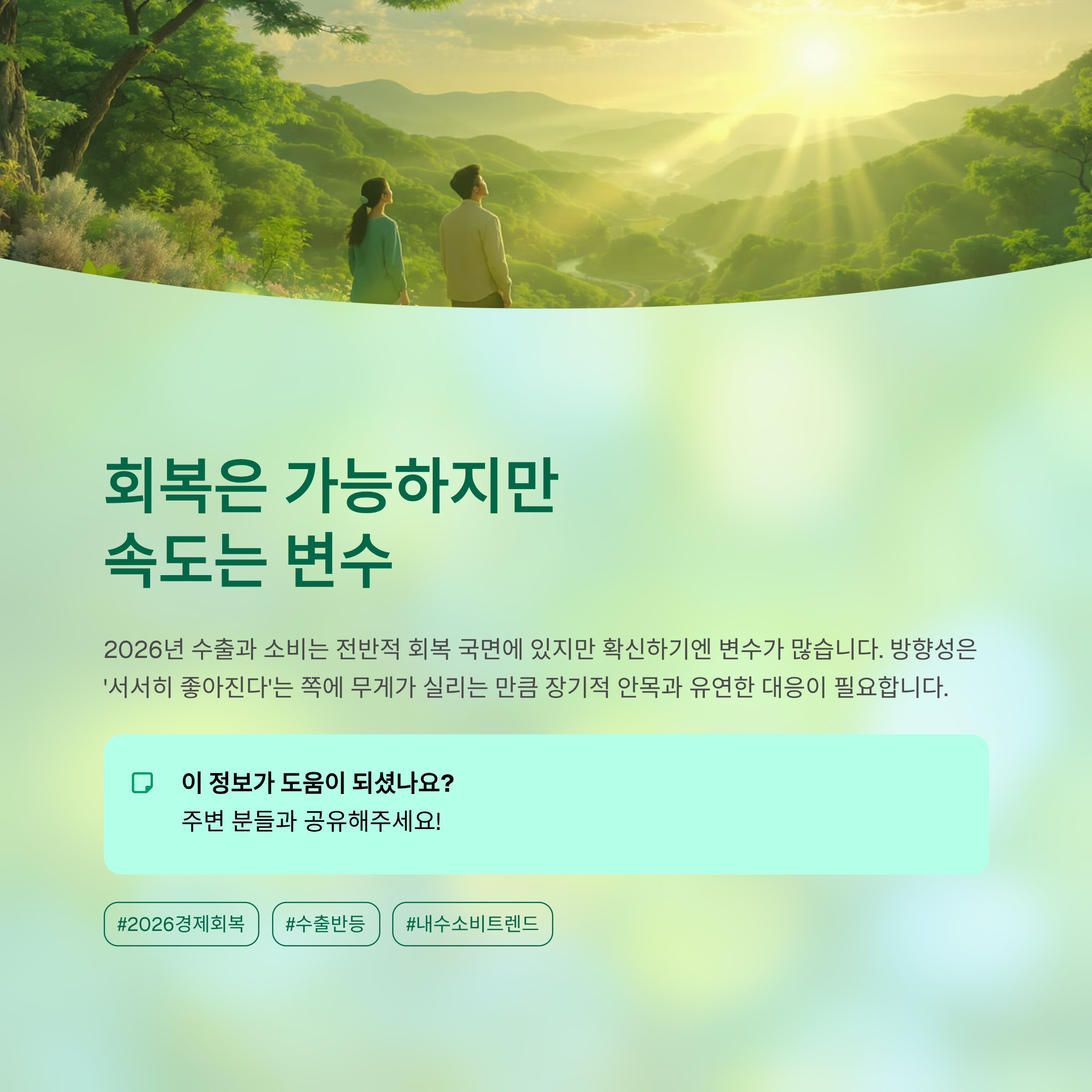 2026년의 수출과 소비는 전반적인 회복 국면에 있지만, 확신을 가지기엔 아직 변수들이 많습니다.