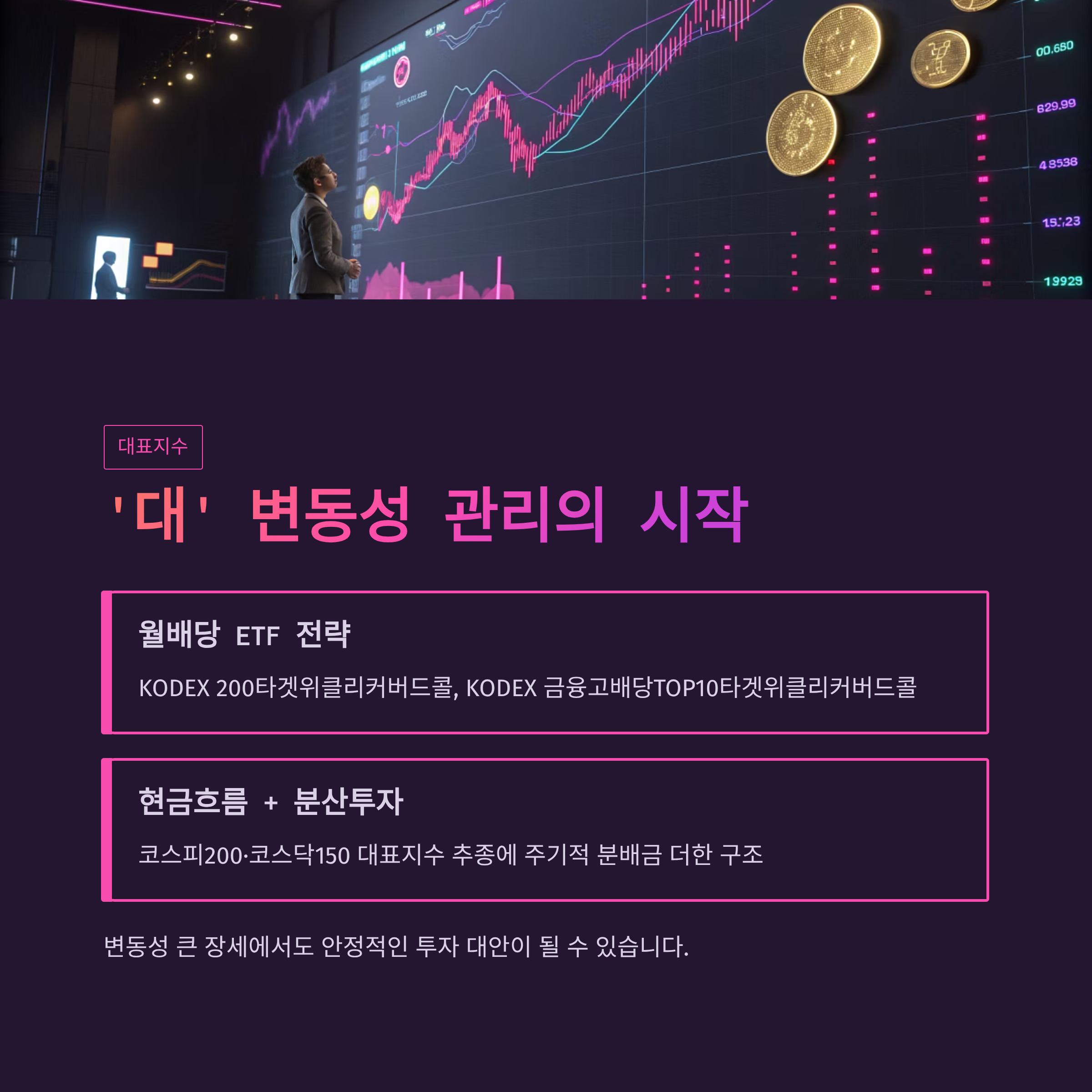 대표지수 기반 ETF와 월배당 상품이 안정적인 투자 대안이 될 수 있다고 강조했습니다.