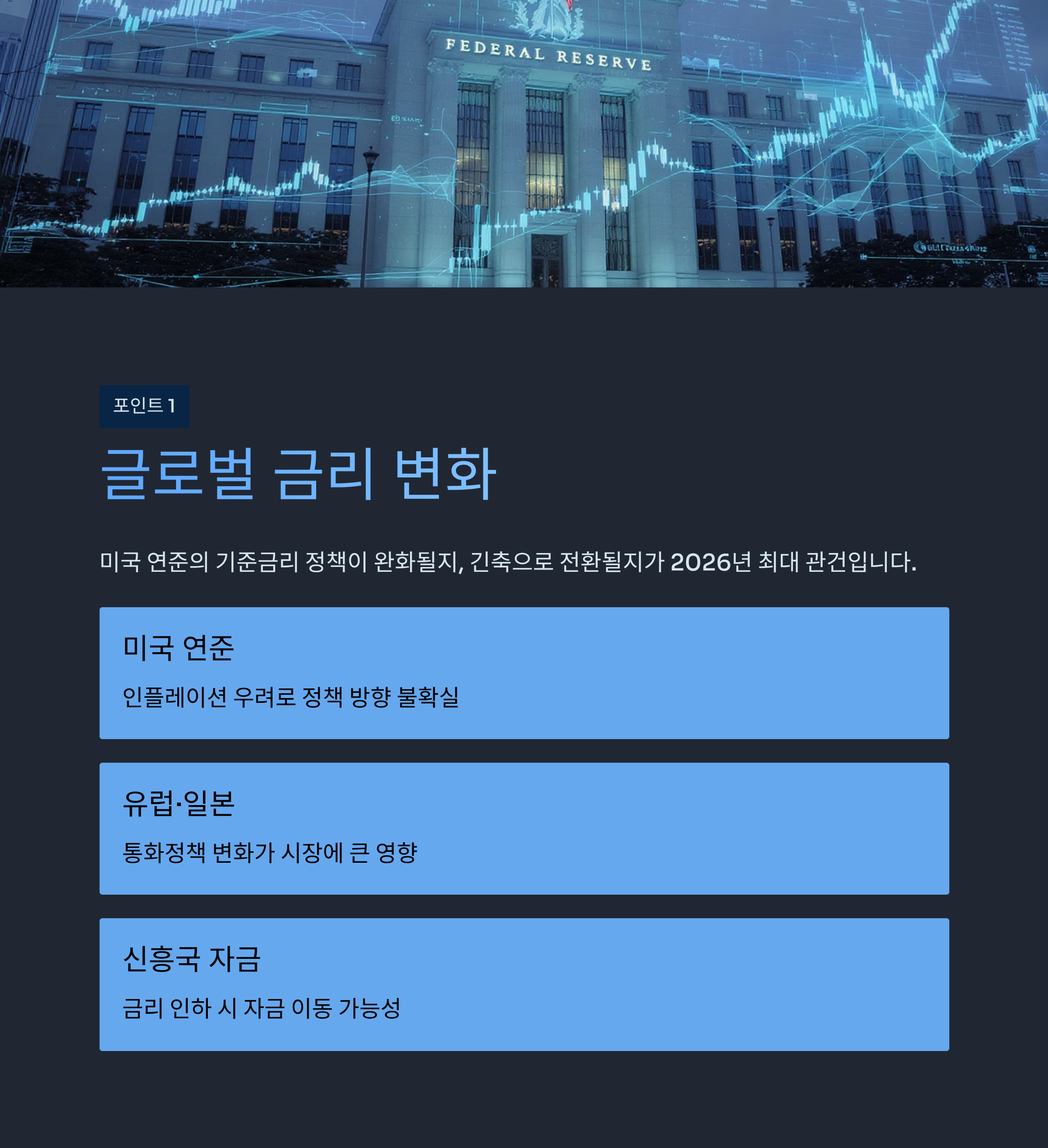 2026년 글로벌 경제의 가장 큰 화두 중 하나는 여전히 금리입니다.